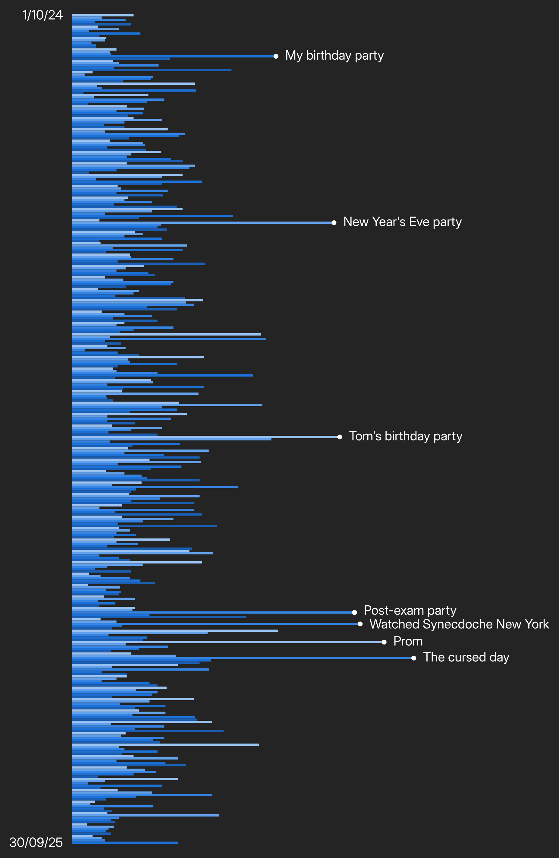 I’ll probably still remember all the major events of this year going forwards, but I reckon that my record of the silly business my friends and I got up to day-to-day is what I’ll value most looking back